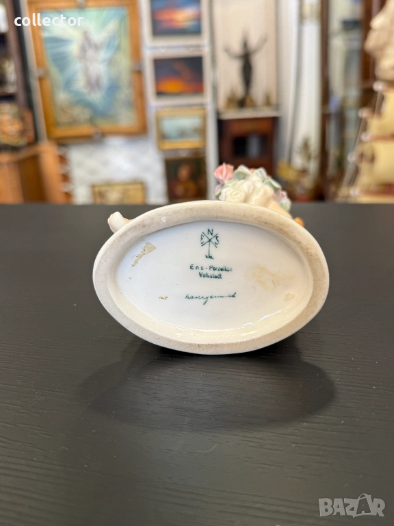 Висококачествен порцелан с характерна нежна глазура и ръчно изработени финни листенца. Произведен от престижната манифактура Karl Ens в Тюрингия, Германия. Състояние видно от снимките.