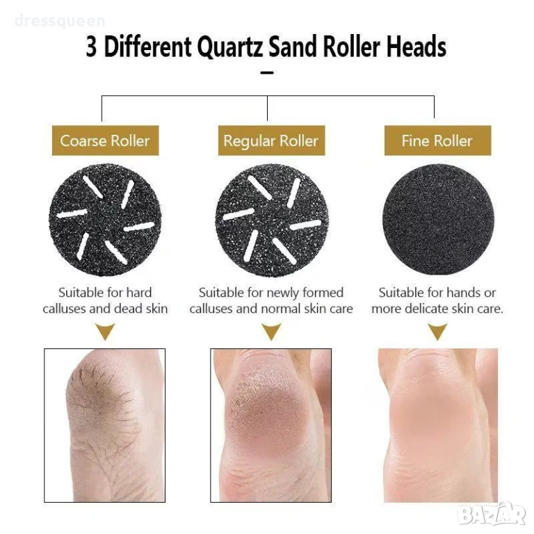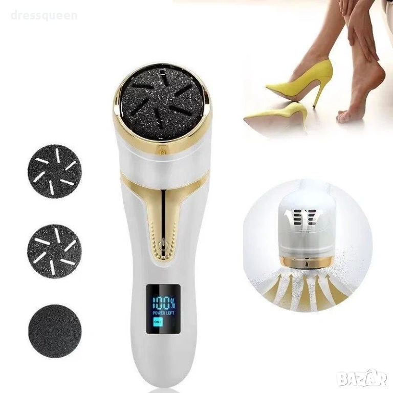 Подарете на краката си професионална грижа с луксозната смарт електрическа пила за пети с 3 приставки.