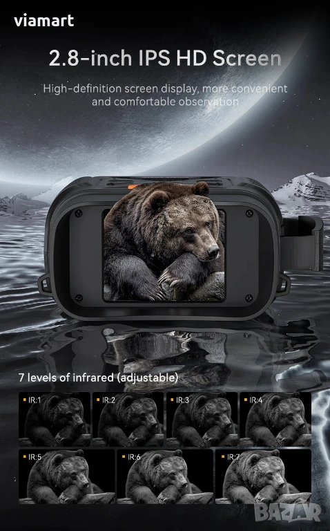 Бинокъл за нощно виждане INSKAM 328 - Full HD 1080p, 10x zoom, до 800м → Обява 53663908