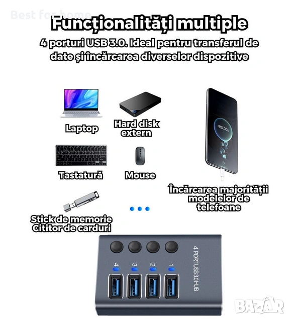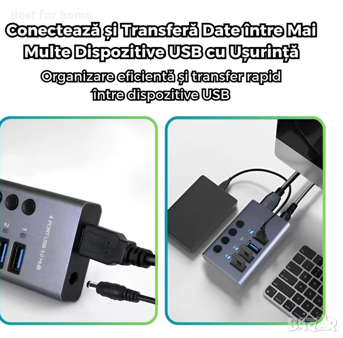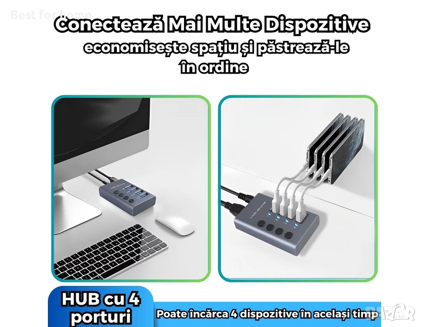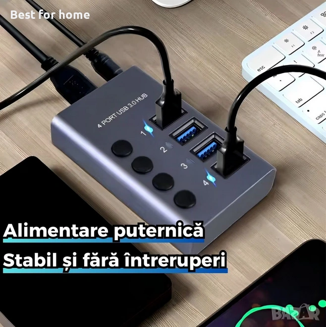 Този 4-портов USB 3.0 хъб предлага висока скорост на трансфер на данни и възможност за зареждане на няколко устройства едновременно. Идеален е за офиса или дома, където имате нужда от бърза и ефективна свързаност между лаптопи, твърди дискове, клавиатури, телефони и други периферни устройства.