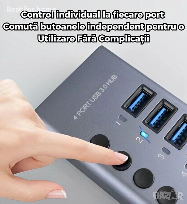 Хъбът е оборудван с LED индикатори за показване на работния статус на всеки порт, така че винаги да имате визуален контрол. Захранването е силно и стабилно, което гарантира непрекъсната работа и безопасност за свързаните устройства.