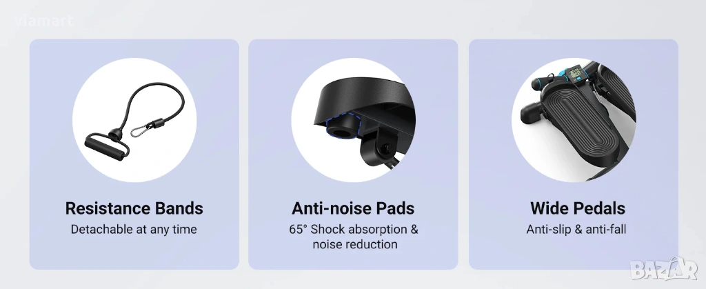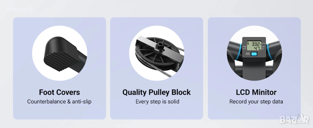 Мини туист степерът MERACH MR-2354 е практично решение, ако искате ефективно кардио и стягане в домашни условия, без да отделяте място за големи фитнес уреди. Системата Twist Action комбинира вертикално стъпване със странично завъртане, което активира повече мускулни групи едновременно и повишава разхода на калории за по-кратко време. В комплекта получавате и тренировъчни ластици, така че по време на стъпването можете да включите и ръце, рамене и гръб - удобно за комплексна тренировка у дома или в офиса.