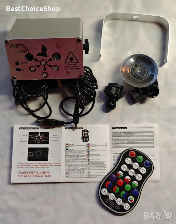 - 🌈【Многофункционална парти лампа】Сребърна стробоскопична лампа с 6 светлинни източника (червена/зелена/LED фонова светлина), 120 модела, промяна на цвета и скоростта според ритъма на звука/музиката, 3D визуален ефект с черна светлина, правещ нощта по-цветна.