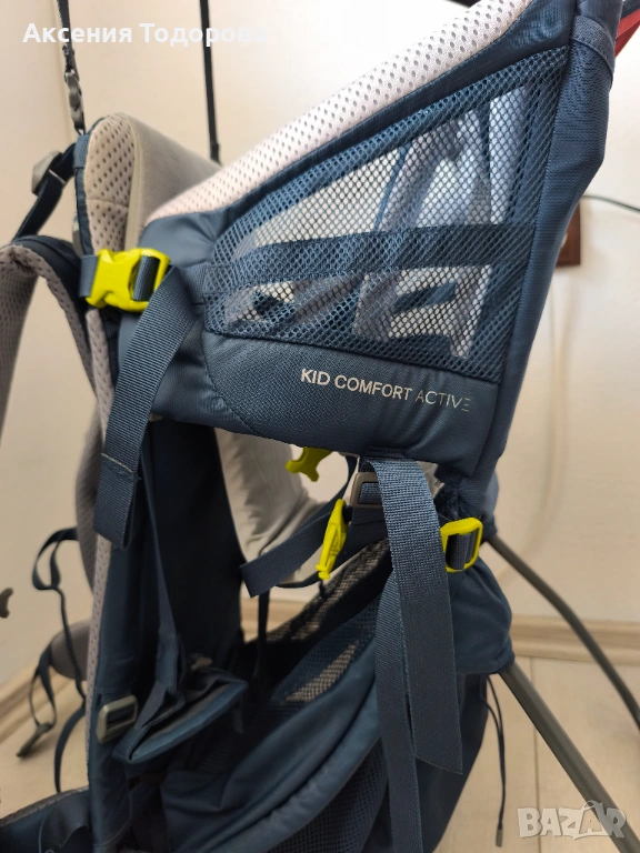 Раница Kid Comfort Active. Максимално тегло на детето - 22 кг.Продсва се в комплект със сенника. Използвана е много малко. Няма следи от употреба.