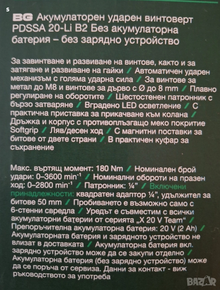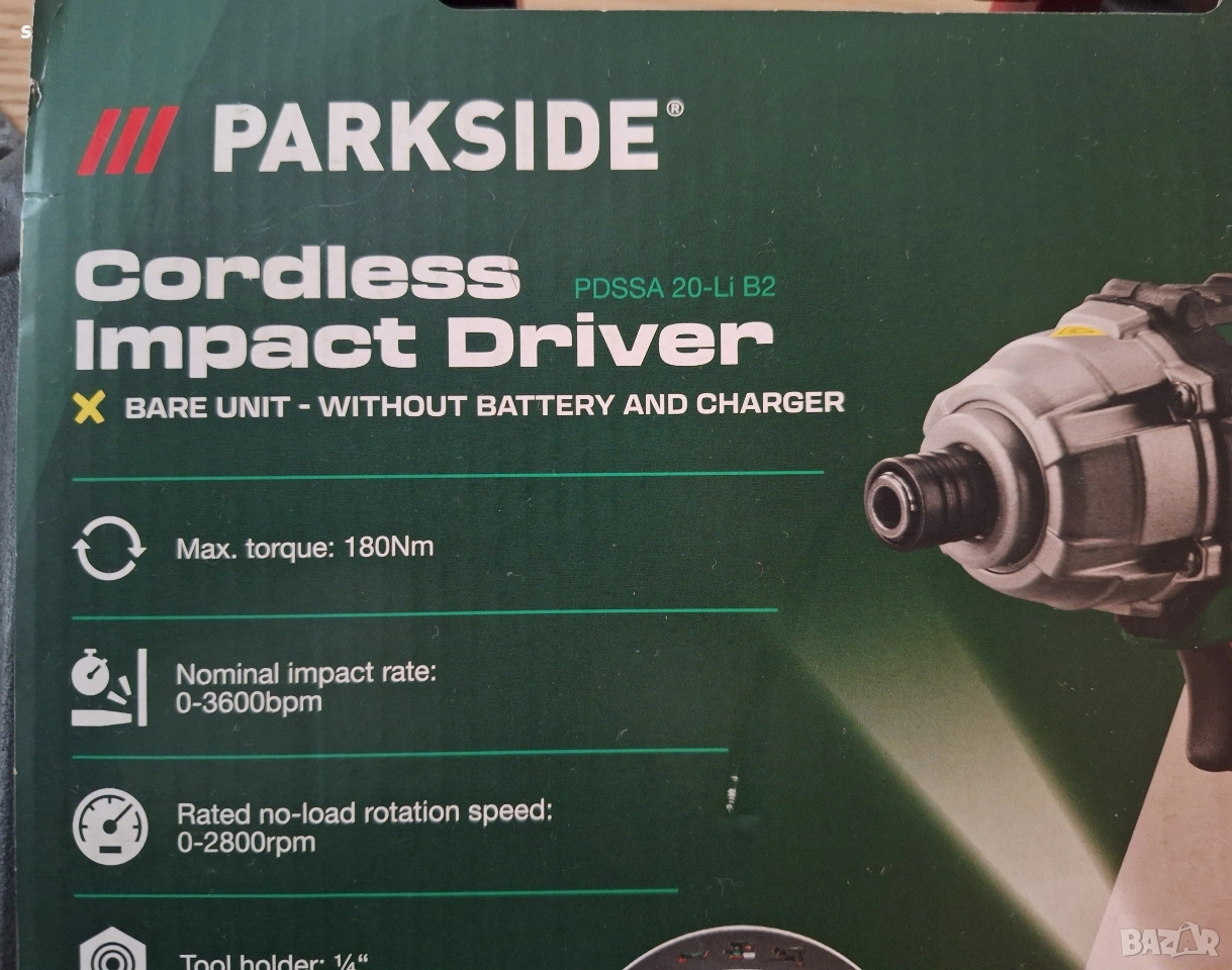 акумулаторен ударен винтоверт 20В импакт на Parkside 20V 180n → Обява 53664312
