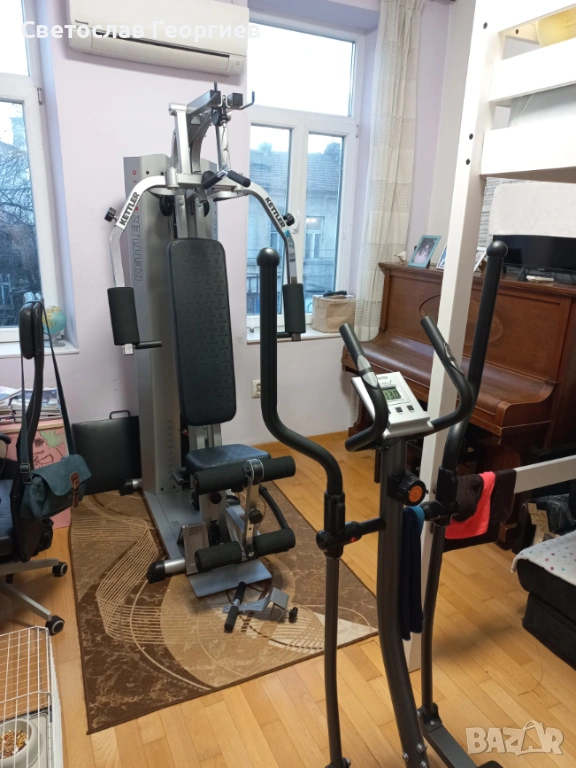 Много красив с хромирани елементи, тежестите са от желязо, последният немски кетлер.възможна доставка до адрес .