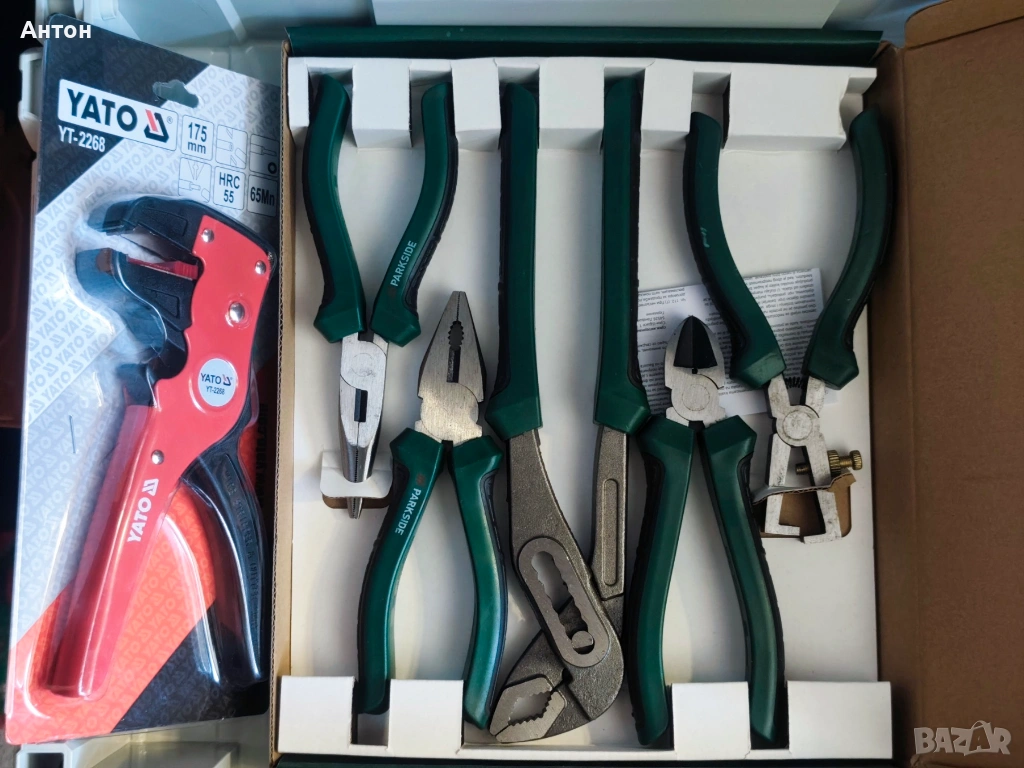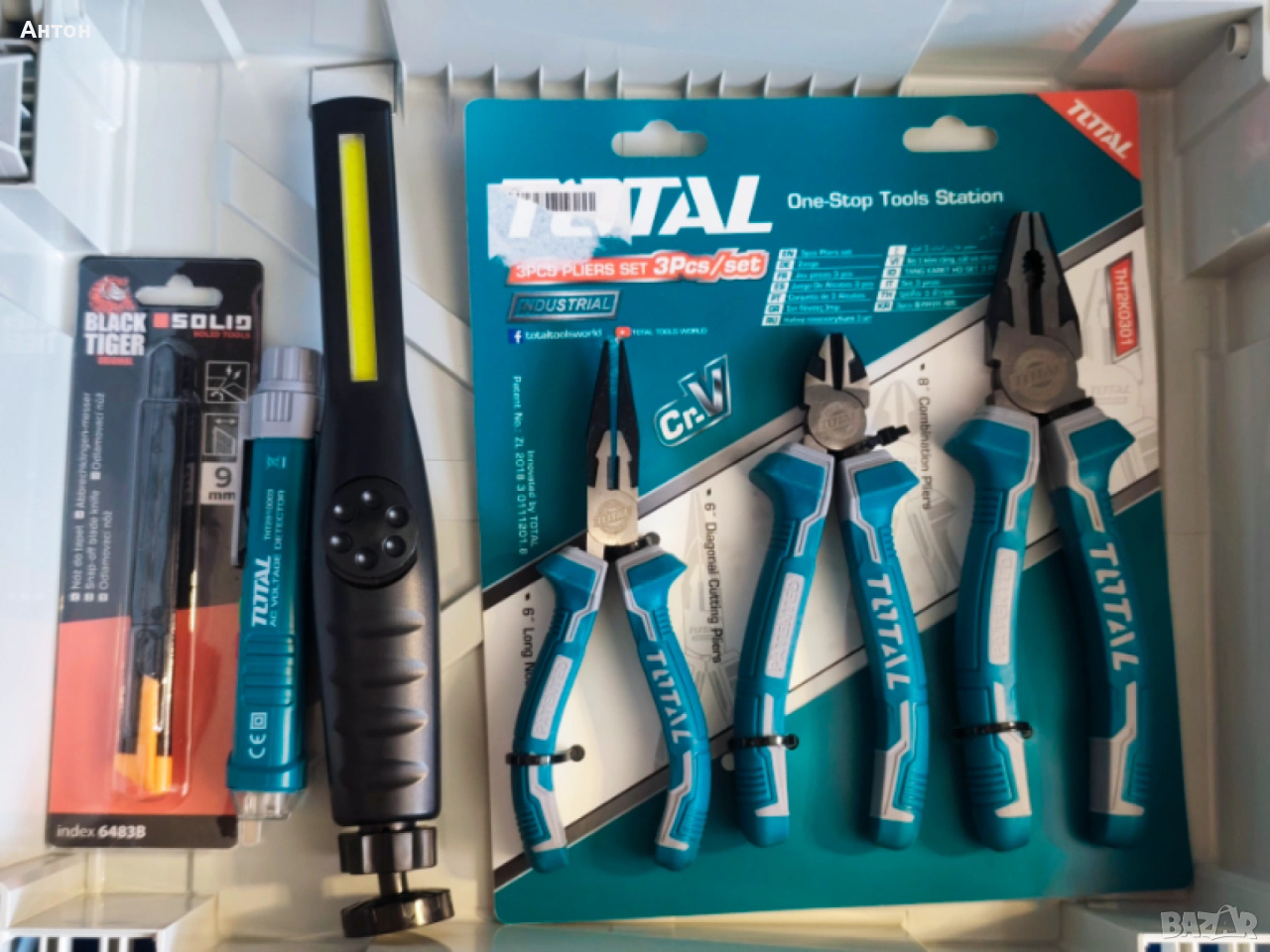 2. Комплект клещи, безконтактен фазомер, LED фенер, макетен нож.
