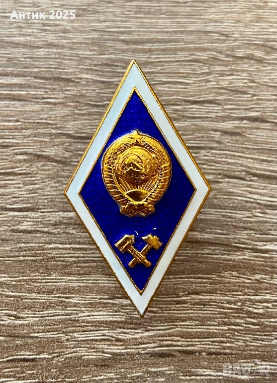 Оригинален съветски дипломен ромбовиден знак, връчван на студенти при завършване на висше техническо образование в СССР.