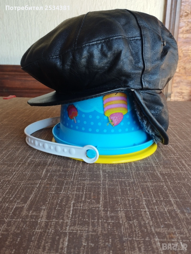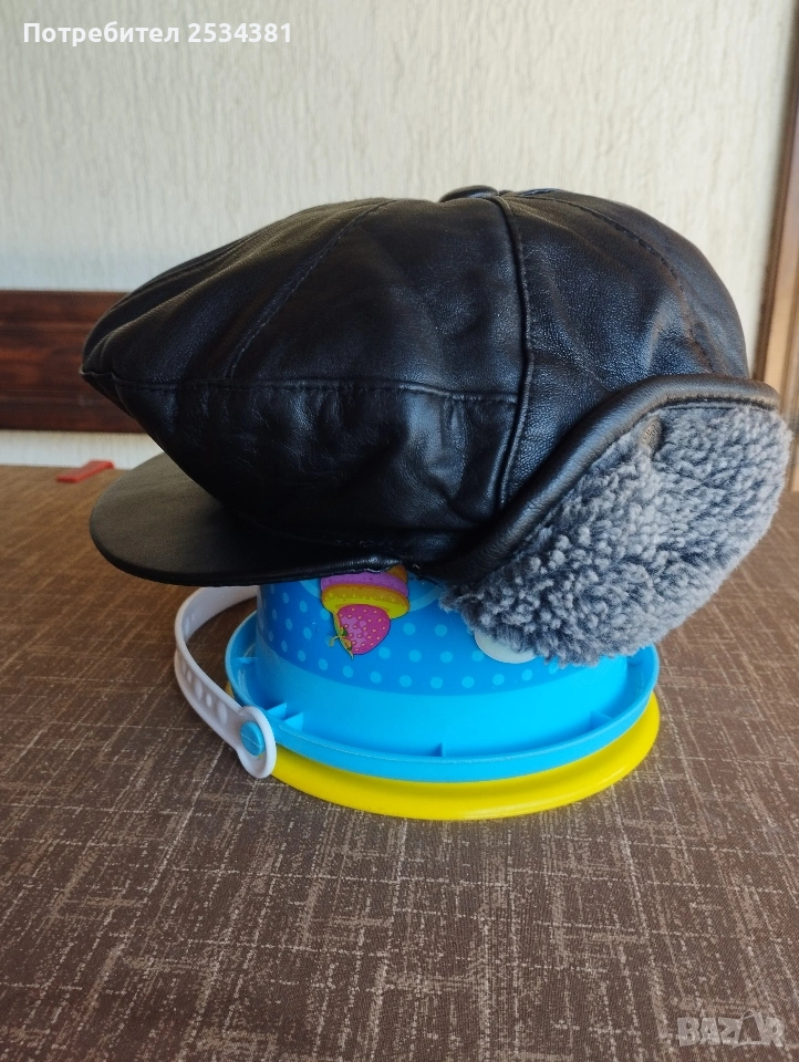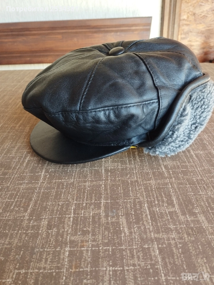 много запазен мъжки кожен зимен каскет.