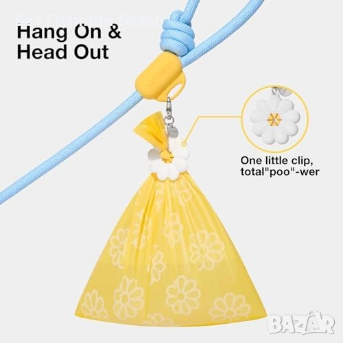 Комплект за разходка: повод + диспенсър за торбички + клипс за торбичка