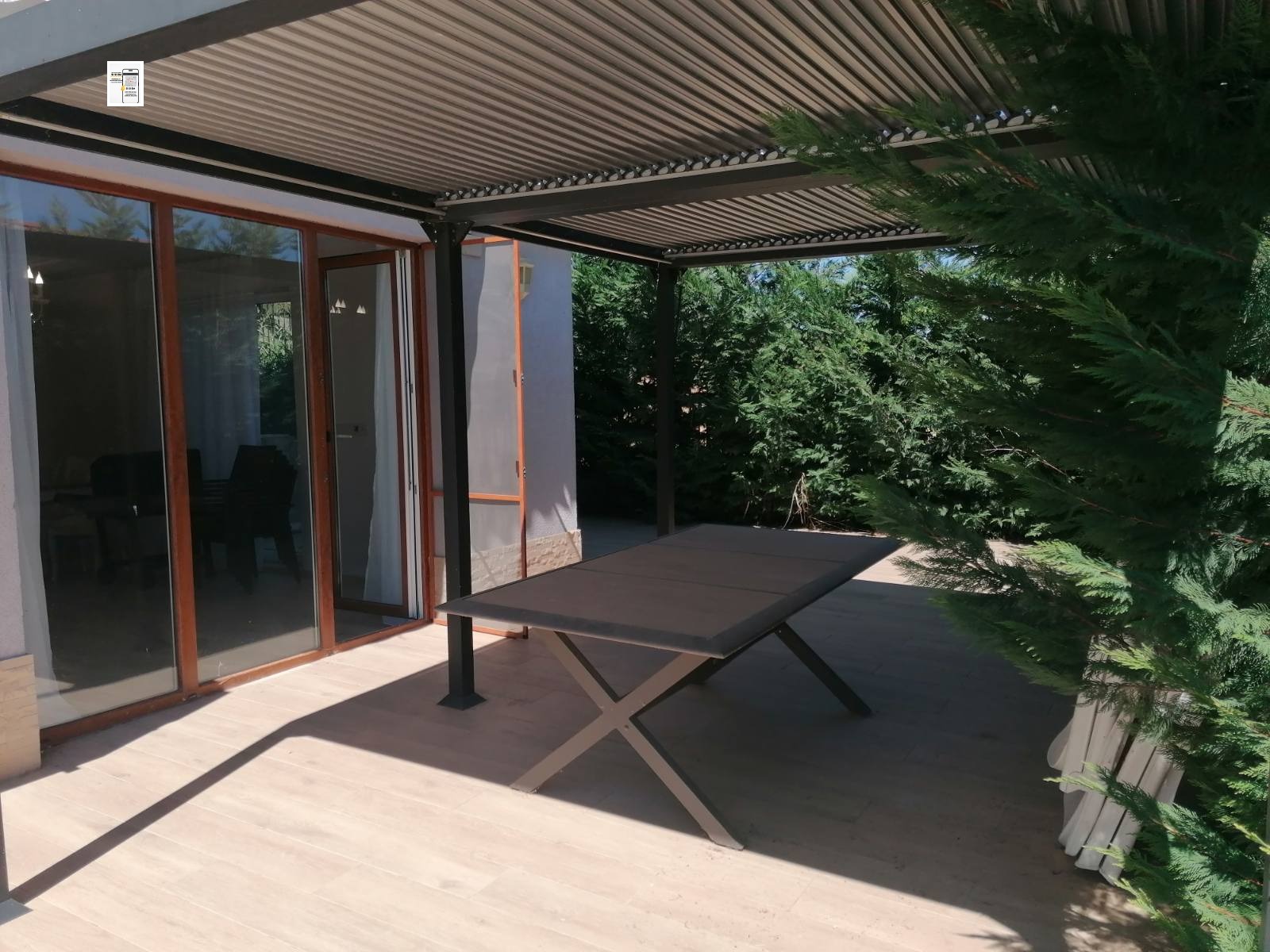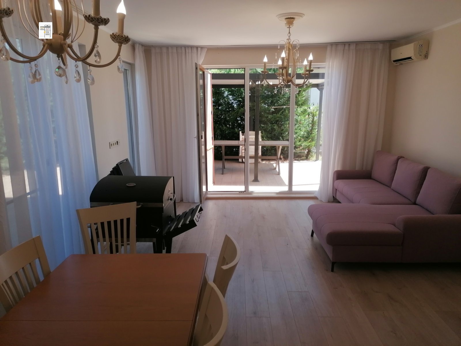 Предлагаме напълно обзаведена и готова за ползване къща на 5. км. от к.к. Албена. Перфектно състояние! Ситуирана е в отлично обслужван комплекс(Хармони хилс) с наличен свободен паркинг, охрана, голям басейн, бар, детска площадка, зелена част. Разпределена е както следва. Ниво.1. Коридор, дневна с кухненски кът, баня с тоалетна, килер, голяма веранда. Ет.2. спалня, баня с тоалетна, широка тераса, Ниво.3. спалня, баня с тоалетна. Спокойно място.25. км. от летище Варна. Отлична възможност да се ползва през летните месеци или целогодишно. Чудесна къща за инвестиция.Съдействаме за кредит при ваше желание. На разумна цена!