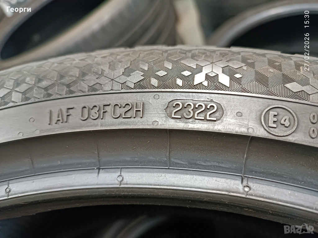 4бр. Continental, 255/40/21 ДОТ 2322, 8.3mm грайфер, цената е за комплекти. Гумите са перфектни, без забележки, проверени са на джанта за кривини, балони... !!! Разполагаме с всякакъв размер нова и втора употреба гуми от 14-22 цола за автомобил, джип и бус. Предлагаме също така НОВИ ГУМИ НА ИЗПЛАЩАНЕ!!!