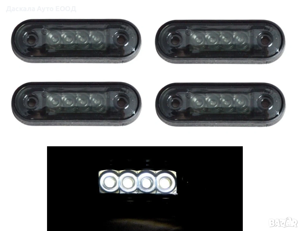 1бр. LED ЛЕД габарит ОПУШЕН, бял с 4 диода, 12-24V → Обява 53665519