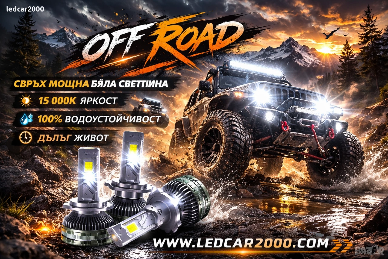 LED КРУШКИ 150W – 45 000 ЛУМЕНА СЪЗДАДЕНИ ЗА ИСТИНСКИ OFF ROAD Представяме ви изключително мощни LED крушки, проектирани специално за офроуд машини и движение извън пътя. Това не са стандартни крушки за градско шофиране – това е решение за максимална видимост в тежки условия. Основни характеристики: Мощност: 150W на крушка Светлинен поток: 45 000 лумена Супер силна бяла светлина с дълъг и плътен сноп Отлична видимост в пълна тъмнина, планински терен, кал и прах Подходящи за джипове, бъгита, ATV, пикапи и офроуд проекти Масивен радиатор и активно охлаждане за стабилна работа Устойчиви на вибрации и тежки условия Предимства: ✔ Осветяват терена на голяма дистанция ✔ По-широко и по-дълбоко покритие спрямо стандартни LED крушки ✔ Идеални за лов, риболов, планински преходи и екстремен офроуд ✔ Максимална сигурност при движение извън асфалт Тези крушки са предназначени за хора, които търсят най-високата възможна яркост и надеждност извън пътя. WWW.LEDCAR2000.COM