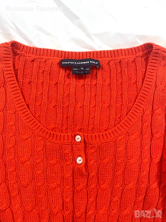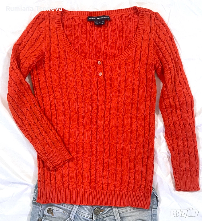 Пуловер от Ralph Lauren в оранжев цвят. Ръкавите са с дължина 3/4. Използван, но в добро състояние. С размер S.
