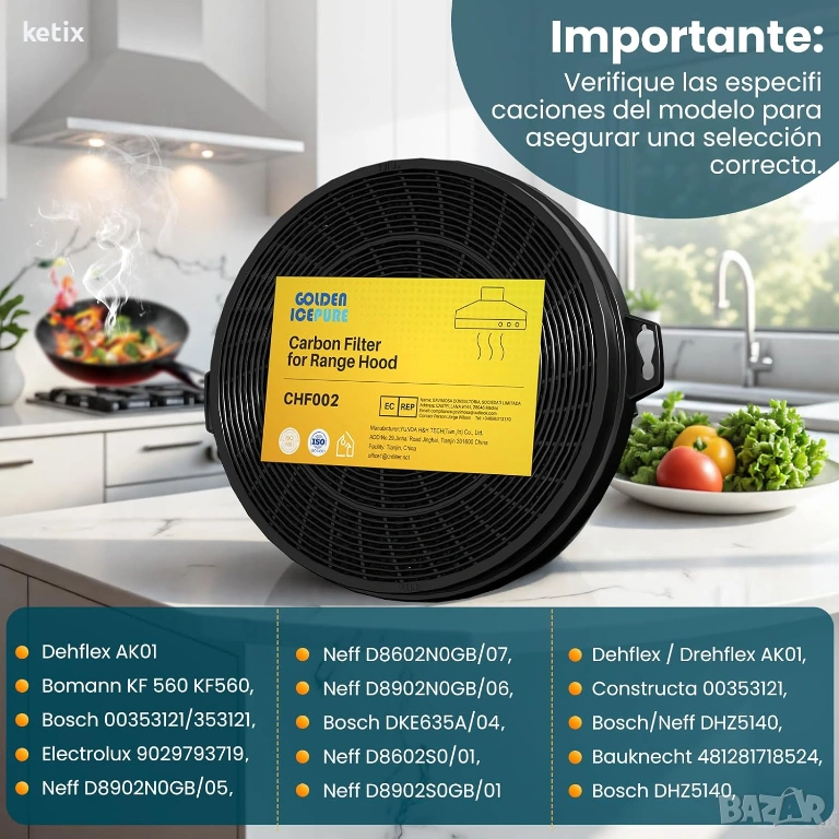 Съвместим с - AK01, BSH Group 00353121 353121, Electrolux Group 9029793719 902979371/9, Gorenje, обозначение EHFCB210 B210, Mod.210 E3CFT211. Whirlpool - група B2 10, FAC539 481281718524 481281728343 481281728311, Indesit C00090822 B210 C00090739, Bomann KF 560 KF560, JJ Pistbe Kolbe K6. Моля, обърнете внимание: използването на имената на марките е единствено за изясняване на съвместимостта.