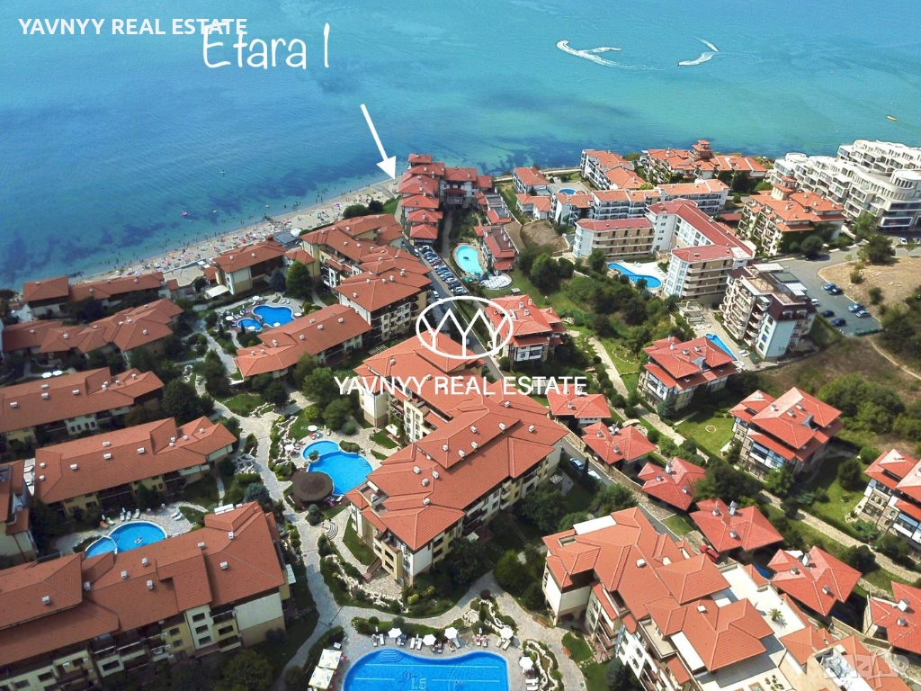 Продава се двустаен апартамент в луксозен комплекс в Свети Влас. Разположен на брега на морето в курорта Свети Влас, комплексът е част от комплекса Диневи Ризорт. Яхтеното пристанище е само на 400 метра, а центърът на града е само на 10 минути пеша. В близост има разнообразни удобства, включително кафенета, клубове, ресторанти, барове, салони за красота и други. Комплексът се състои от красиви сгради с различна височина, проектирани в уникален старобългарски стил с бели фасади, елегантни колони, оригинални прозорци и дървени елементи. Територията на комплекса е добре поддържана и оградена. На територията му са открити басейни, ресторанти, кафенета, пиано бар, магазин и паркинг. Осигурена е охрана. Комплексът е построен и въведен в експлоатация. Наличен е Акт 16. ID: 144