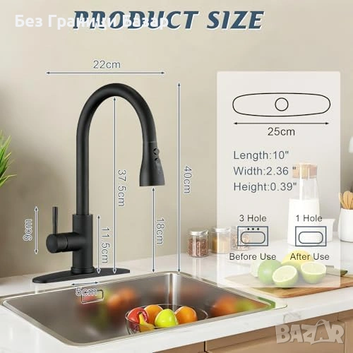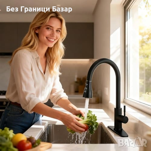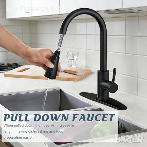 Смесител за кухненска мивка с издърпващ се маркуч за по-голям обхват при работа