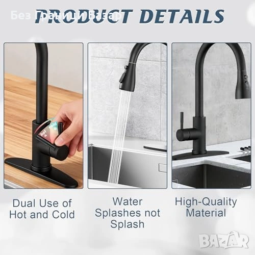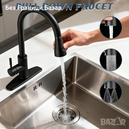 Нов кухненски Инокс смесител за мивка 360° въртене pull-down душ 3 режима