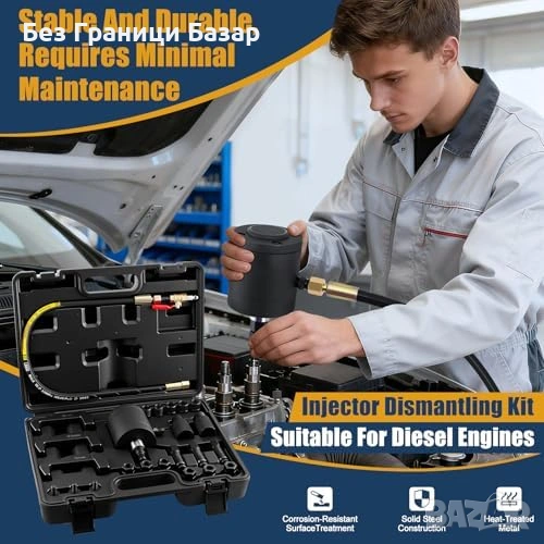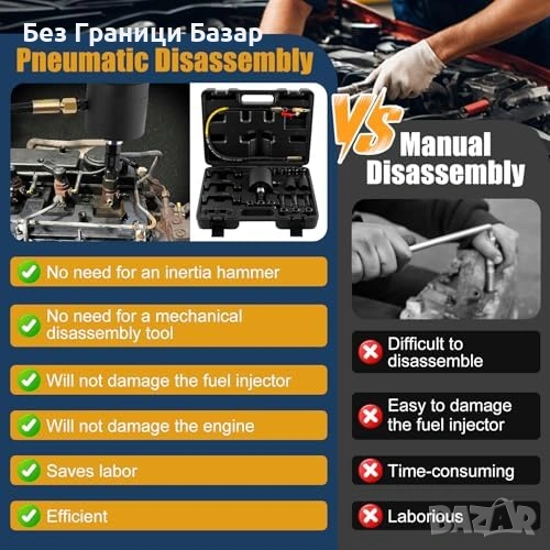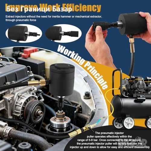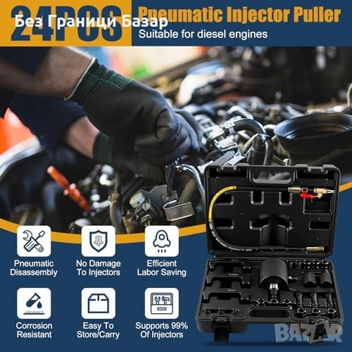 Пневматичен комплект за вадене на дюзи за дизелови двигатели – за заседнали инжектори при нагар и „залепване“ от висока температура