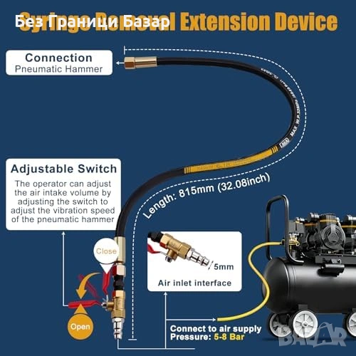 Нов Вибрационен пневмо инструмент за дюзи 5–8 bar + 22 адаптера Екстрактор