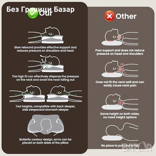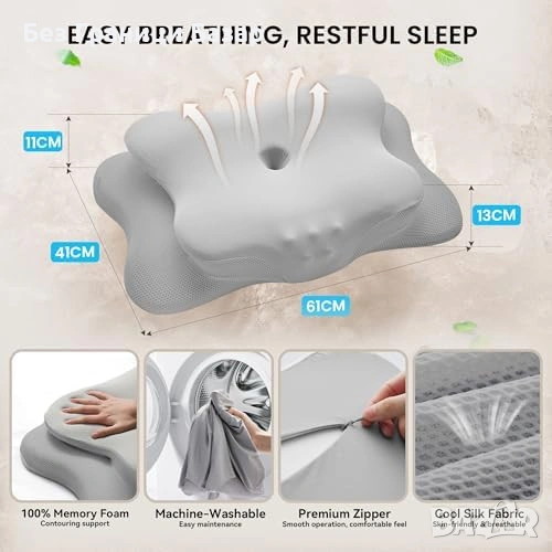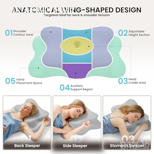 Ортопедична възглавница за сън настрани, по гръб и по корем – една форма, много позиции