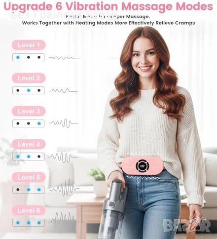 6 режима на масаж с вибрации; може да работи с топлина + масаж едновременно