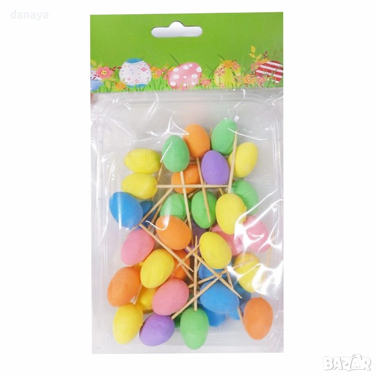 6438 Парти клечки за хапки с цветни великденски яйца – 36 броя, 6.5 см
