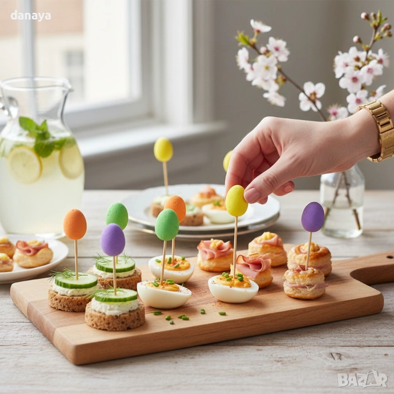 Парти клечки за хапки с цветни великденски яйца внасят настроение, цвят и празнична атмосфера на всяка трапеза. Подходящи за Великден, пролетни събирания, детски партита и семейни поводи, те превръщат обикновените хапки в ефектно поднесено изживяване.