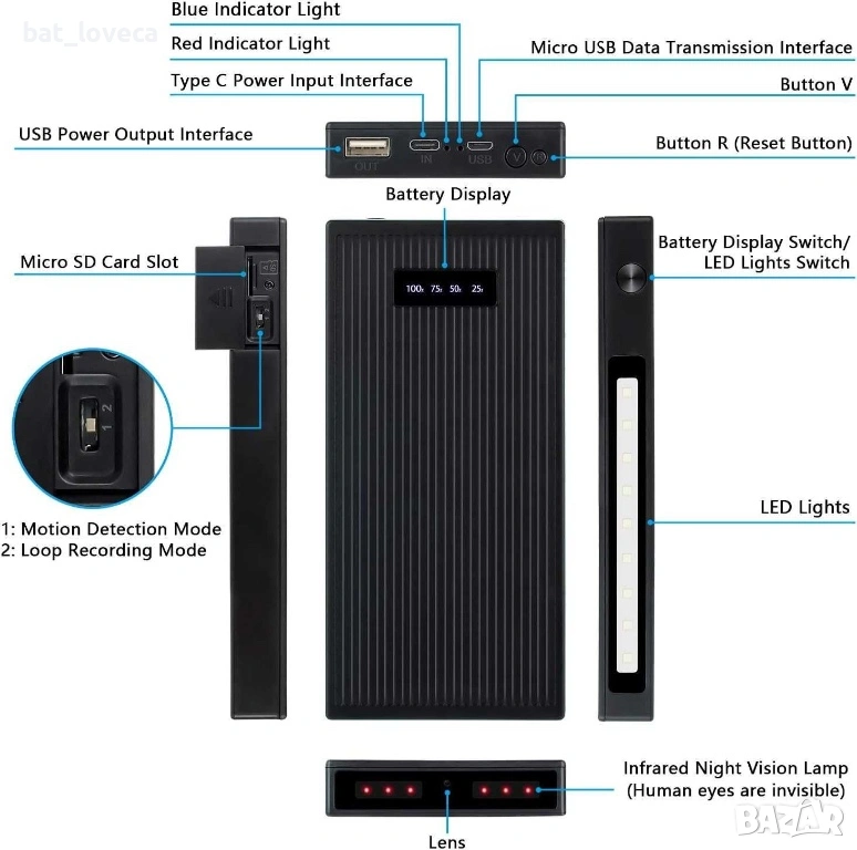 Тази скрита камера тип powerbank е практично решение за хора, които търсят компактно, дискретно и лесно за използване устройство за наблюдение, комбиниращо дълъг живот на батерията и качествен Full HD запис.
