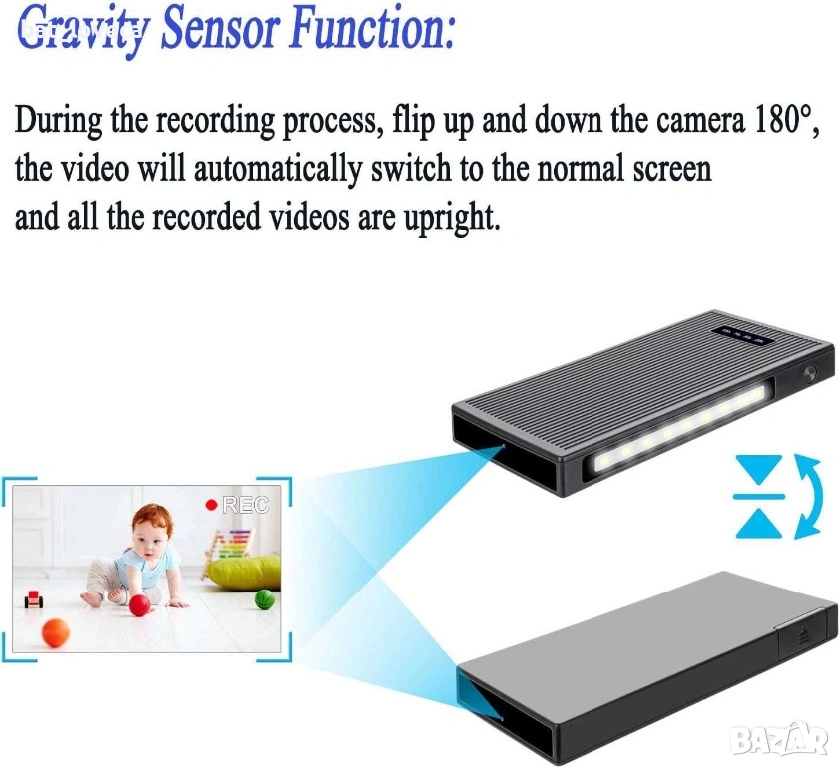 Камерата поддържа сензор за движение, който активира запис само при засечена активност, както и цикличен запис (loop recording) за непрекъсната работа. Управлението е изключително лесно – не са нужни Wi-Fi, приложения или софтуер. Записите се съхраняват директно върху MicroSD карта.