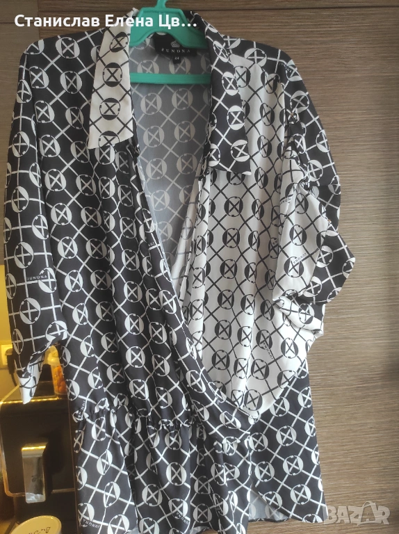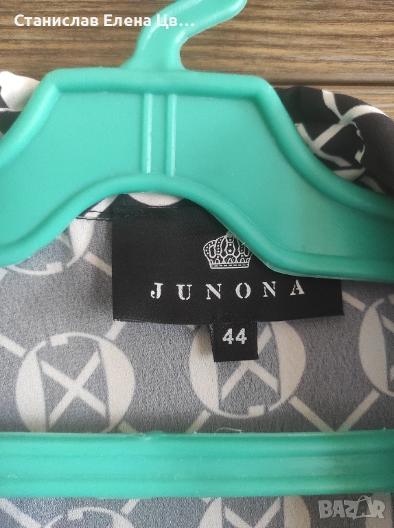 Дамска риза Junona, размер по етикет 44, обличана един път за повод, като нова. 80 % полиестер, 20% вискоза.