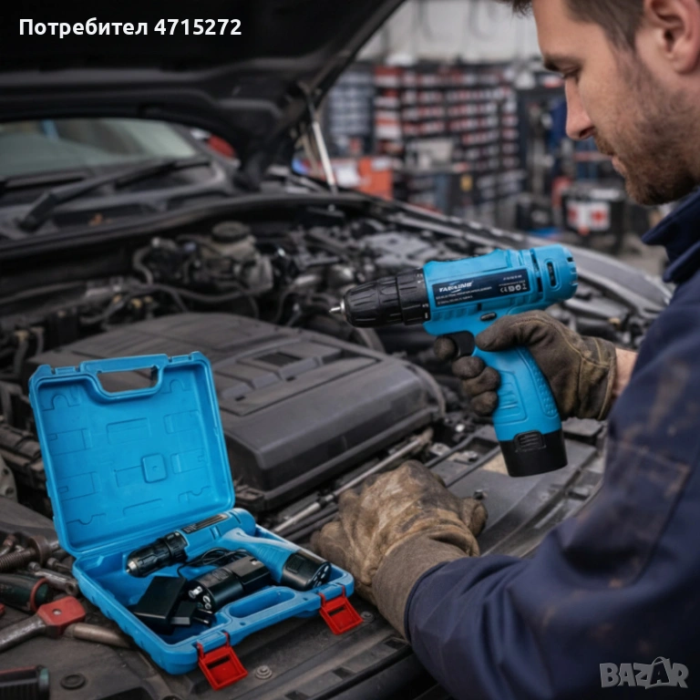 Комплект безжичен винтоверт с Led осветление, 2 батерии и куфар - всичко под ръка