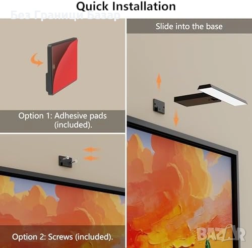 Комплект 2 броя LED осветители за картини/рамки – подходящи за арт, снимки и декор на стена