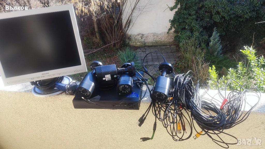 Пълен работещ комплект видео наблюдение,монитор,ДВР,4 камери,кабели,захранване,мишка.