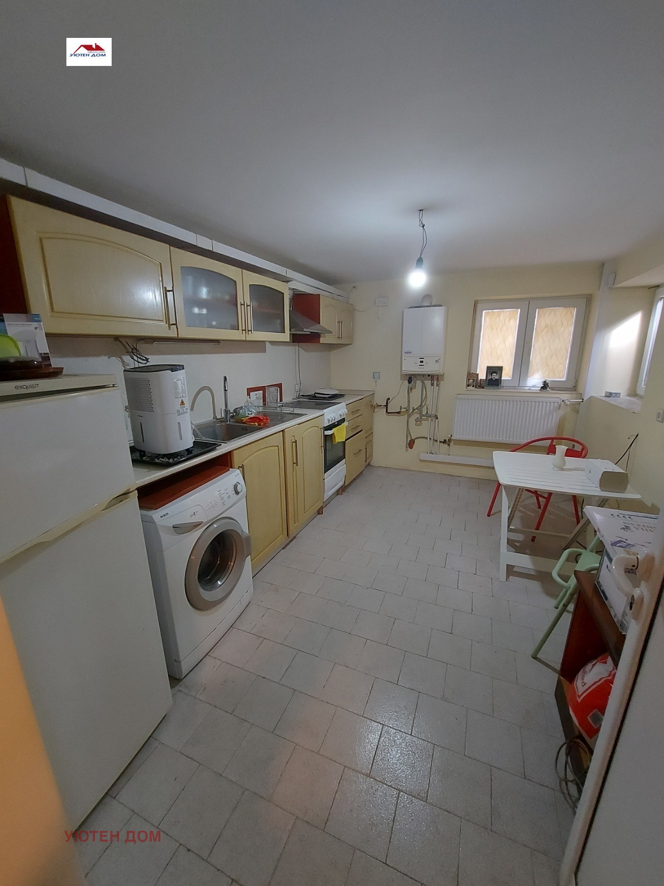 Продава се първи етаж от тухлена къща със самостоятелен вход в района на Военното училище. Имотът е с площ 85 кв.м. Разпределението на жилището е следното: коридор, дневен тракт с кухненски бокс, две спални, тераса, баня и тоалетна заедно и килер. Етажа от къщата е след основен ремонт. Сменени са ЕЛ и В и К инсталации, ПВЦ дограма, външна изолация на северната стена, подовите настилки са ламиниран паркет и гранитогрес. Отоплението е решено чрез локално парно на газ и 1 климатик. Към етажа от къщата има сутерен с площ от 50 кв.м./след ремонт/. Състоящ се от дневна с кухненски бокс, една стая и баня и тоалетна заедно. Към имота има двор 172 /кв.м/, в който се намира помещение което може да се ползва за гараж /29 кв.м./ В двора могат да се обособят 2 парко места. Намира се в непосредствена близост до училища, детски градини, магазини, заведения и автобусни спирки. Цена 150 000 евро.