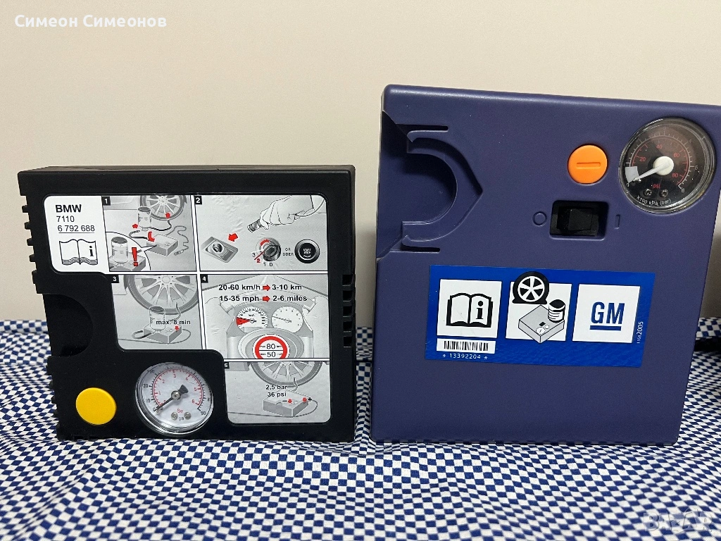 Продавам компресори за гуми. Единият компресор е GM - цена 19,99€, а другият е на BMW - цена 24,99€. Цената и за двата е 40€!