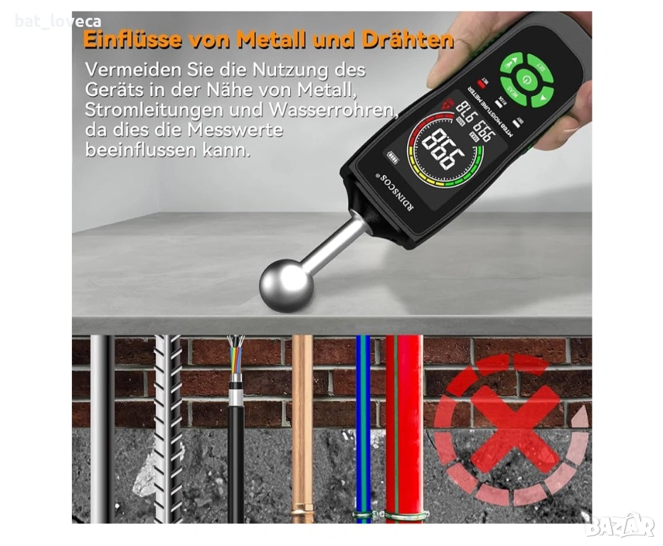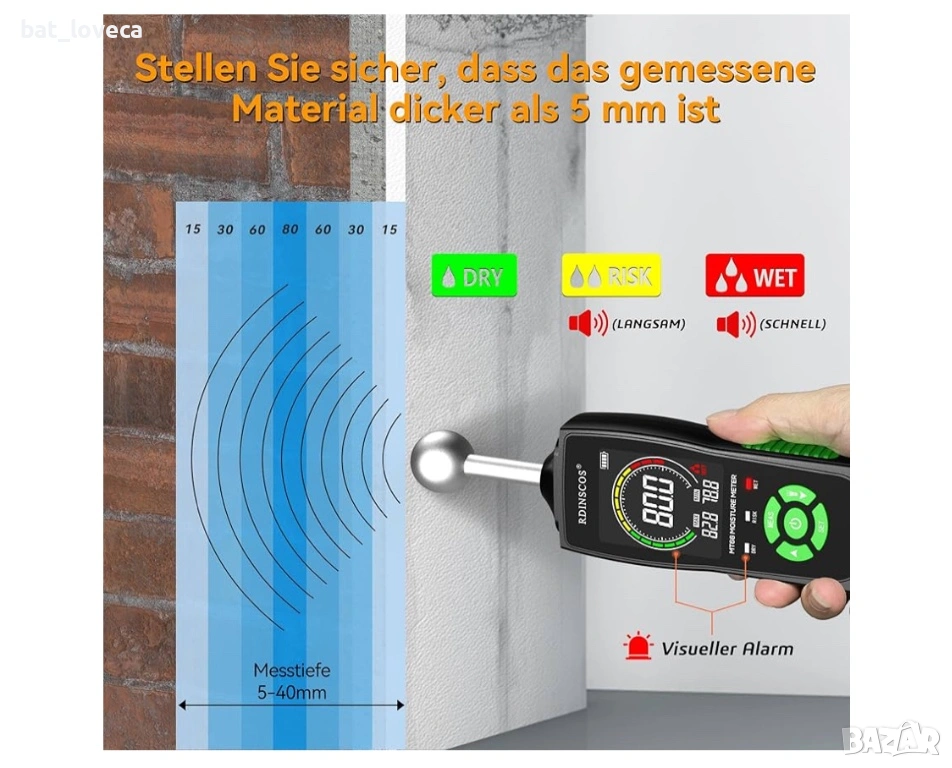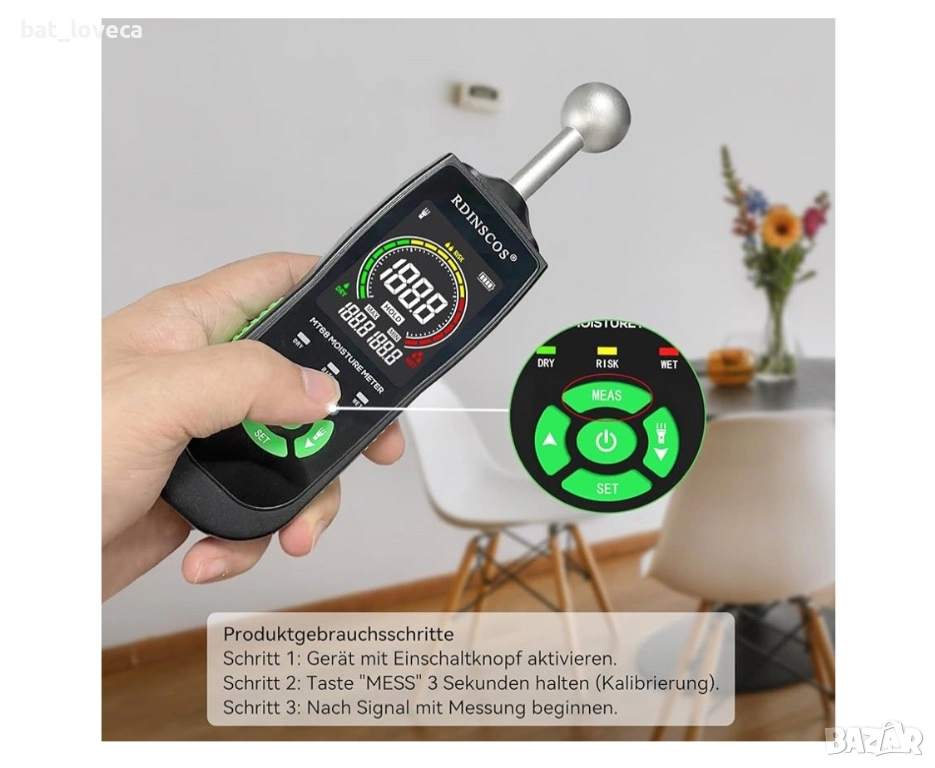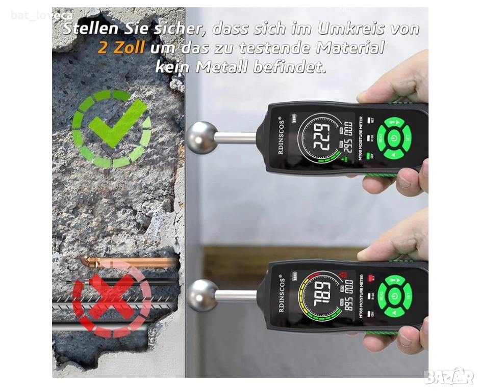 Нов Влагомер RDINSCOS – професионален уред за измерване на влага без пробиване и повреждане на повър → Обява 53667275