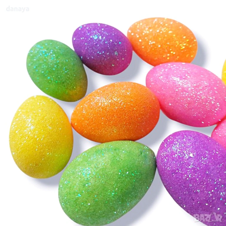 С нежно брокатено покритие и наситени цветове, тези яйца са подходящи за украса на кошници, венци, маси, подаръчни кутии, букети и DIY декорации. Перфектни са както за домашна украса, така и за магазини, витрини, детски кътове и празнични пространства.