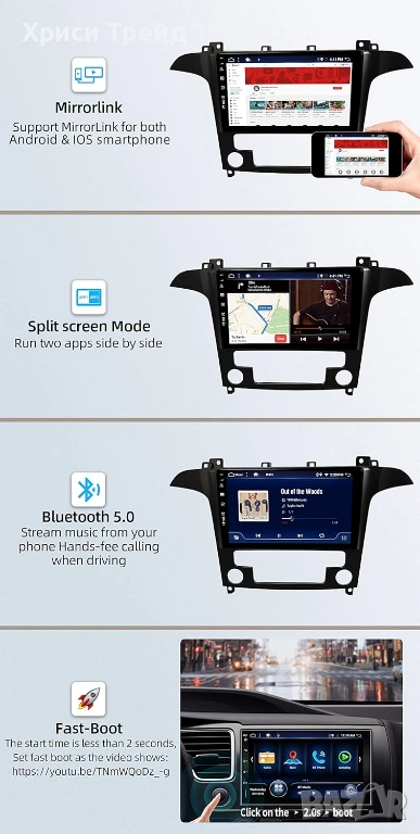 Bluetooth 5.0: За разговори със свободни ръце (Handsfree) и стриймване на музика.