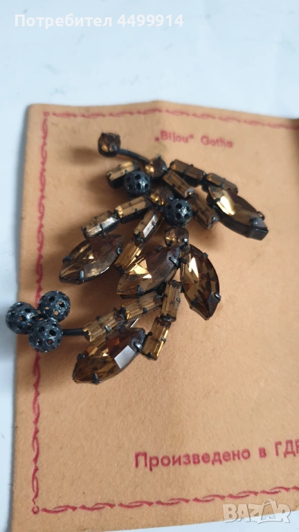 Винтидж брожка с кристали произведена в ГДР → Обява 53667643