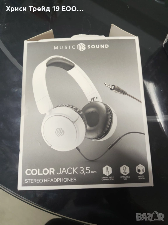 Продавам чисто нови стерео слушалки Music Sound, модел Color Jack. Слушалките са с изчистен бял дизайн и предлагат отлично качество на звука за ежедневна употреба.