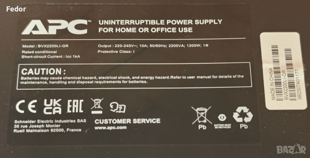 Непрекъсваем ТЗИ, APC Easy UPS 2200VA, 230V, AVR, снимка 1 - UPS захранвания - 53667837 Непрекъсваем ТЗИ, APC Easy UPS 2200VA, 230V, AVR, снимка 2 - UPS захранвания - 53667837 Непрекъсваем ТЗИ, APC Easy UPS 2200VA, 230V, AVR, снимка 3 - UPS захранвания - 53667837 Непрекъсваем ТЗИ, APC Easy UPS 2200VA, 230V, AVR, снимка 4 - UPS захранвания - 53667837 Непрекъсваем ТЗИ, APC Easy UPS 2200VA, 230V, AVR, снимка 5 - UPS захранвания - 53667837 Непрекъсваем ТЗИ, APC Easy UPS 2200VA, 230V, AVR, снимка 6 - UPS захранвания - 53667837 Непрекъсваем ТЗИ, APC Easy UPS 2200VA, 230V, AVR, снимка 7 - UPS захранвания - 53667837 Непрекъсваем ТЗИ, APC Easy UPS 2200VA, 230V, AVR, снимка 8 - UPS захранвания - 53667837 Непрекъсваем ТЗИ, APC Easy UPS 2200VA, 230V, AVR, снимка 9 - UPS захранвания - 53667837 Непрекъсваем ТЗИ, APC Easy UPS 2200VA, 230V, AVR, снимка 10 - UPS захранвания - 53667837 Непрекъсваем ТЗИ, APC Easy UPS 2200VA, 230V, AVR, снимка 11 - UPS захранвания - 53667837 Непрекъсваем ТЗИ, APC Easy UPS 2200VA, 230V, AVR, снимка 12 - UPS захранвания - 53667837 1/12