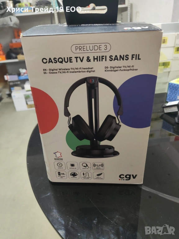 Продавам чисто нови безжични слушалки за телевизор и Hi-Fi системи CGV Prelude 3. Идеални за гледане на телевизия без да пречите на околните или за необезпокоявано слушане на музика с високо качество.