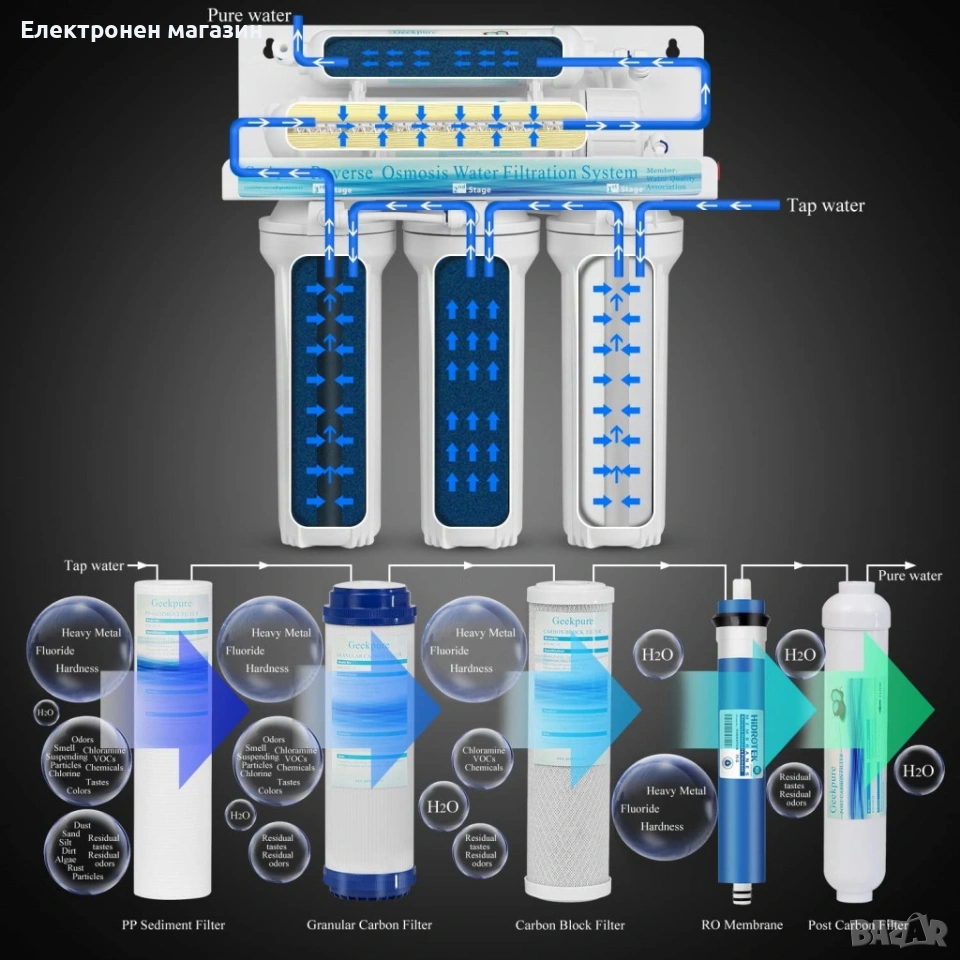Система за обратна осмоза за питейна вода Geekpure RO6-AF – 6 стъпки + алкален филтър → Обява 53668381