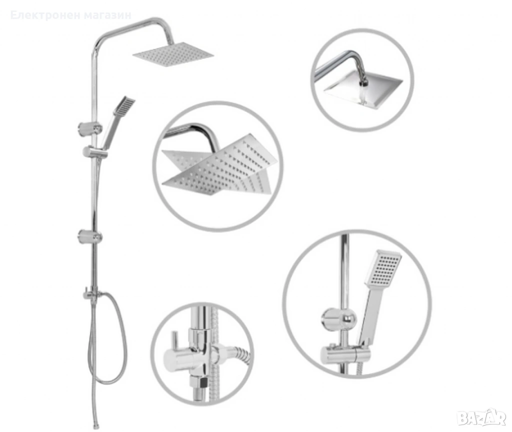 Съдържание на опаковката: 1 x душ маркуч, 1 x душ слушалка, 1 x душ колона;