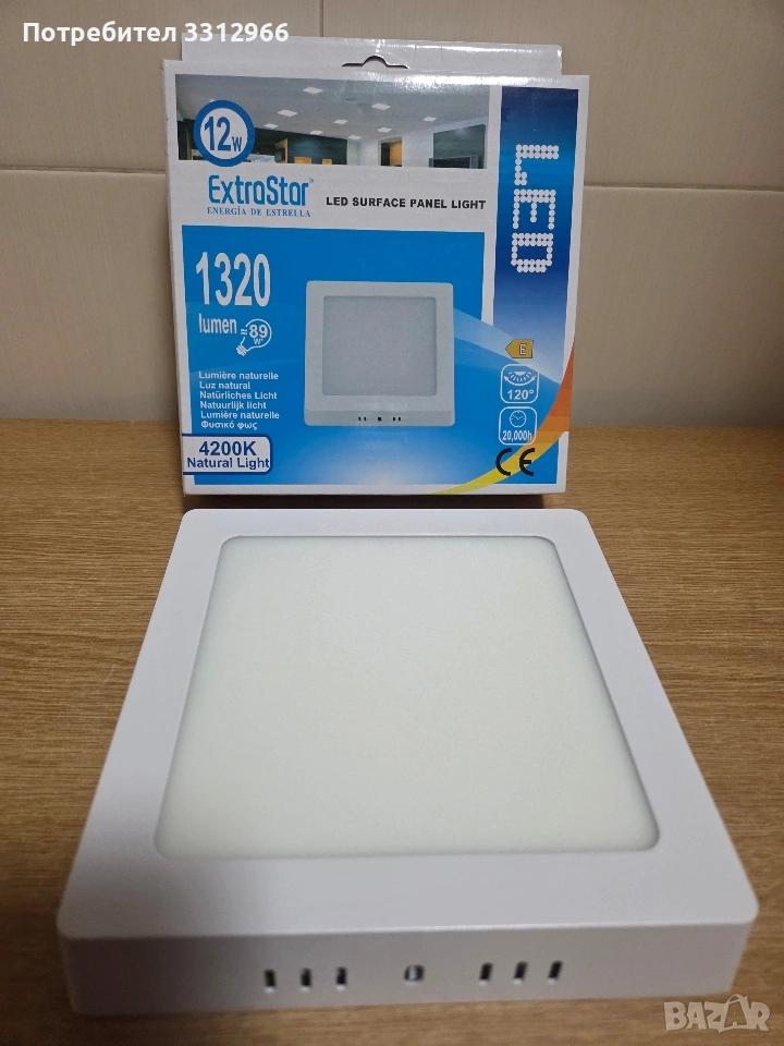 Чисто нов LED панел ExtraStar, модел 12W. Мощност: 12W Светлинен поток: 1320 лумена, снимка 1 - Лед осветление - 53668488 Чисто нов LED панел ExtraStar, модел 12W. Мощност: 12W Светлинен поток: 1320 лумена, снимка 2 - Лед осветление - 53668488 Чисто нов LED панел ExtraStar, модел 12W. Мощност: 12W Светлинен поток: 1320 лумена, снимка 3 - Лед осветление - 53668488 Чисто нов LED панел ExtraStar, модел 12W. Мощност: 12W Светлинен поток: 1320 лумена, снимка 4 - Лед осветление - 53668488 1/4