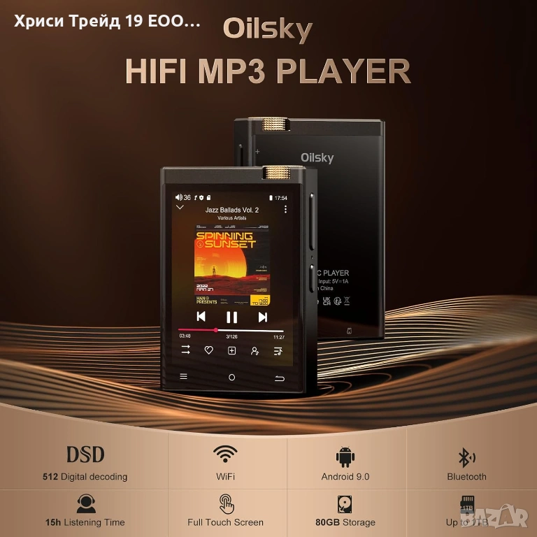 Продавам професионален цифров музикален плеър Oilsky. Устройството е идеално за хора, които държат на безкомпромисното качество на звука (Hi-Res Audio) и искат да се откъснат от смартфона си, докато слушат музика.