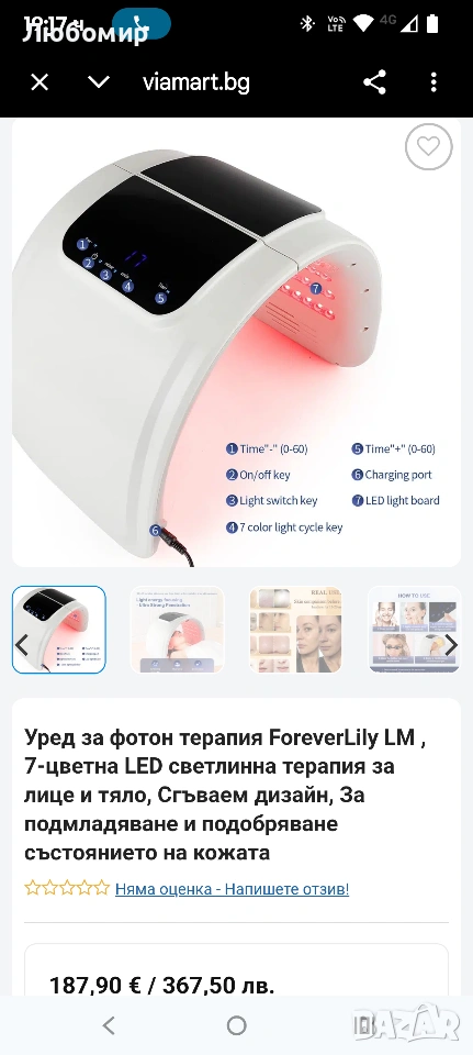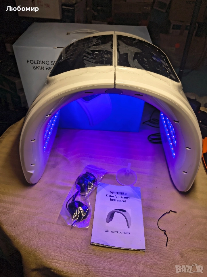Уред за фотон терапия ForeverLily LM , 7-цветна LED светлинна терапия за лице и тяло, Сгъваем дизайн, За подмладяване и подобряване състоянието на кожата.Уредът за фотон терапия ForeverLily LM използва 7 различни LED светлинни спектъра, като всеки достига до определена дълбочина и активира естествените регенеративни процеси на кожата. Те помагат, както при лечение на акне, така и при нужда от подмладяване, заличаване на белези, стягане и изсветляване на кожата.7-цветна LED светлинна терапия за цялостна грижа и възстановяване на кожата