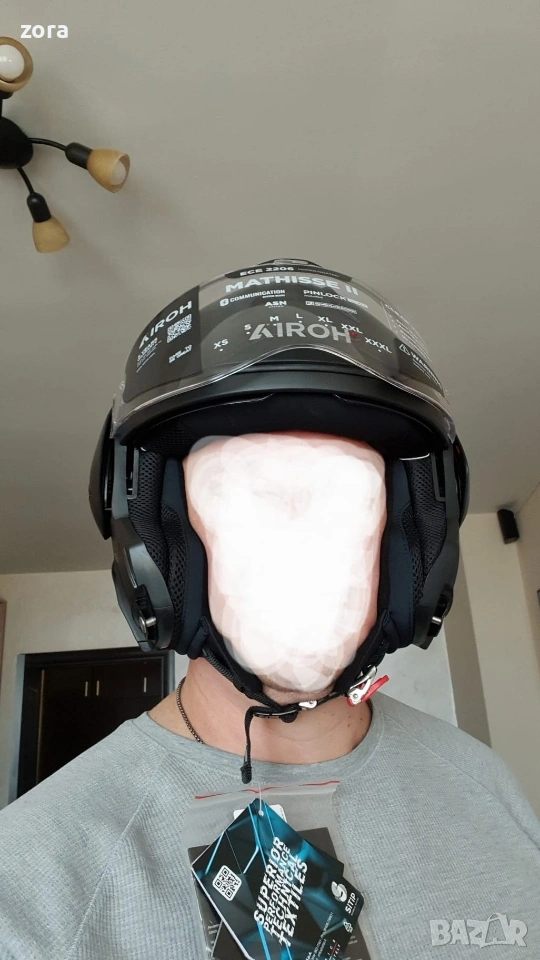 Каската е чисто нова, само пробвана. Размер XXL , за обиколка на главата 61-62 см. Налична за изпращане. Mathisse II може да променя своята природа с прост жест, това е идеалният партньор, каската Airoh 2 в 1 с неповторим дизайн, която винаги е готова и отзивчива да посрещне всякакъв вид приключение и ситуация. Четири различни размера на HRT черупката със завладяващи графики и вътрешни подплати, които покриват широк диапазон от размери. Те са изработени с иновативни тъкани и обработки, допълнени от системата ASN, и осигуряват комфорт при носене дори при най-интензивната и продължителна употреба, дори в най-горещите дни и при взискателни климатични условия, най-вече благодарение на P/J хомологацията, която позволява използване както в отворено, така и в затворено положение. Освен това визьорът предлага изключително широко зрително поле, подчертано също от антизамъгляващата позиция и от лещата Pinlock® 120 XLT, включена в кутията. С Mathisse II трябва само да закопчаете ремъка и да се насладите на пътешествието с мотоциклета си, просто бъдете неудържими!